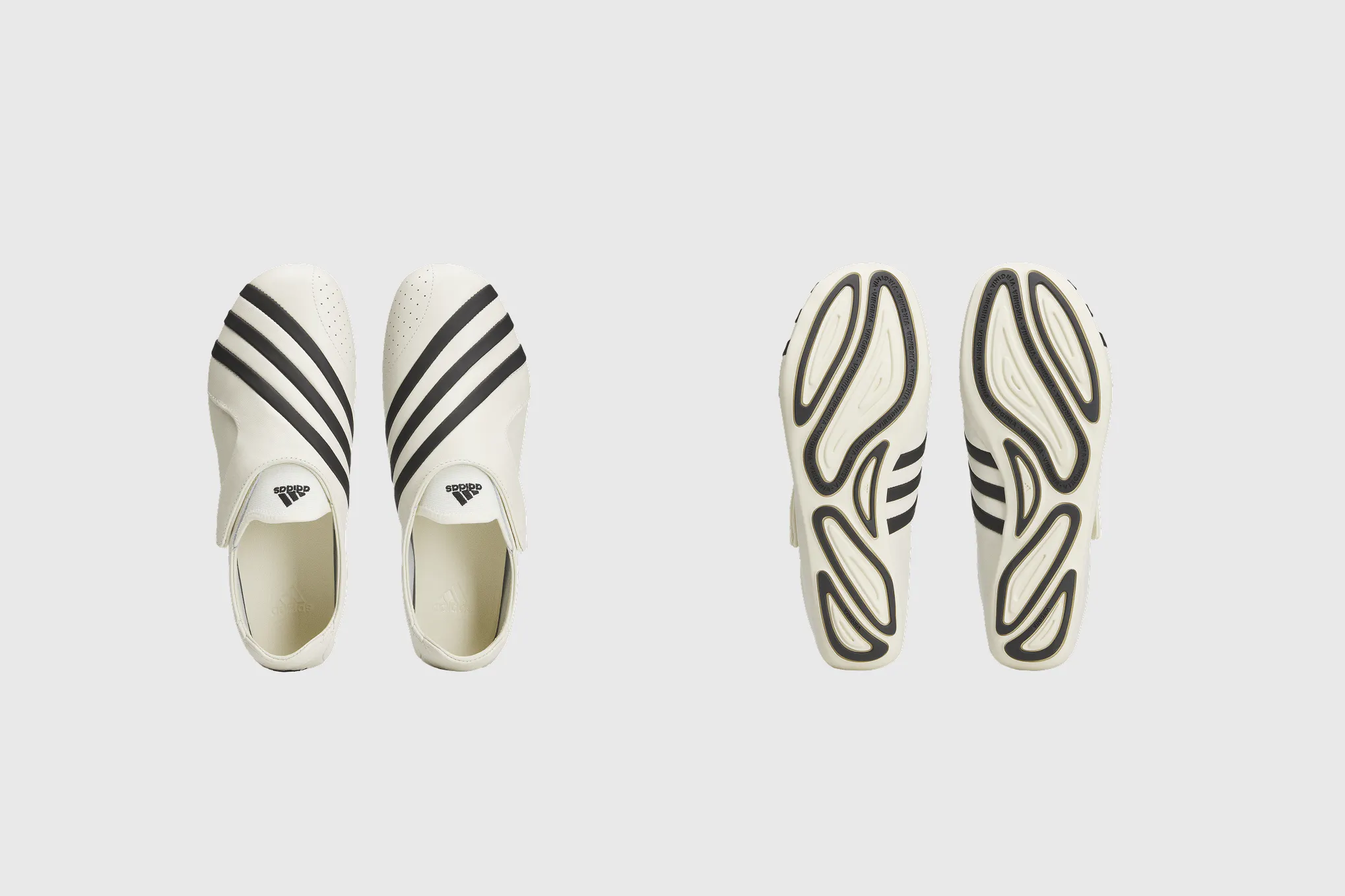 The updated style arrives in two full-grain leather colourways – white with green or black stripes – featuring a flexible foot-wrap construction, leather lining and an EVA insole. A direct-injected outsole completes the build, while the pared-back form reflects Pharrell’s ongoing exploration of shape, material and perspective.