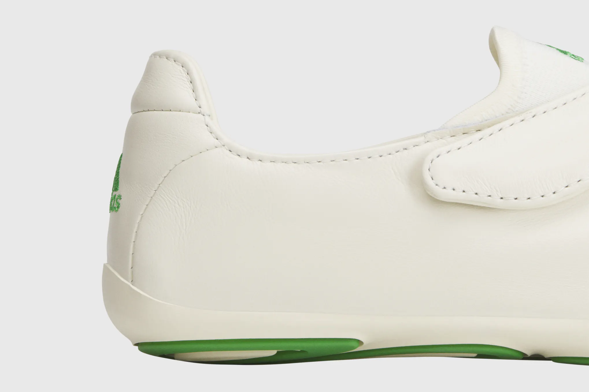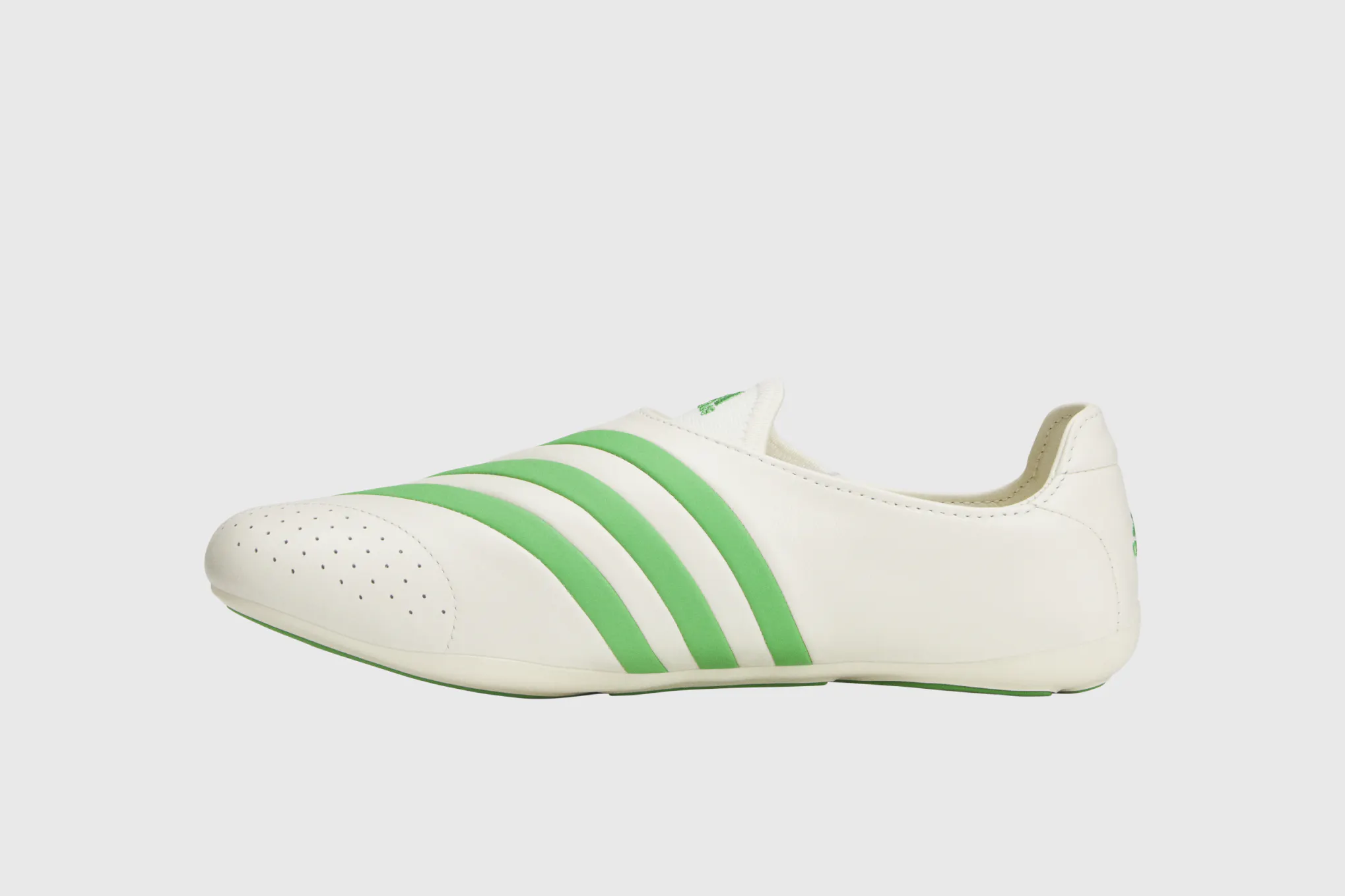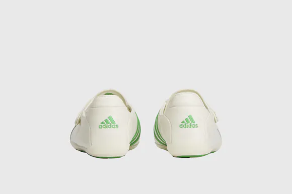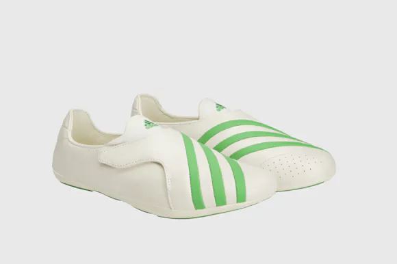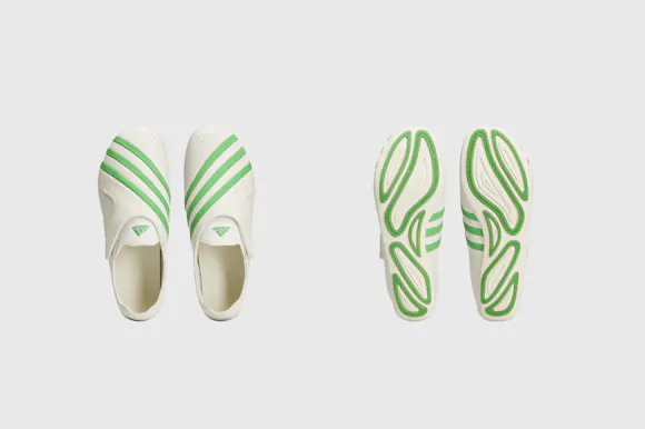 The updated style arrives in two full-grain leather colourways – white with green or black stripes – featuring a flexible foot-wrap construction, leather lining and an EVA insole. A direct-injected outsole completes the build, while the pared-back form reflects Pharrell’s ongoing exploration of shape, material and perspective.