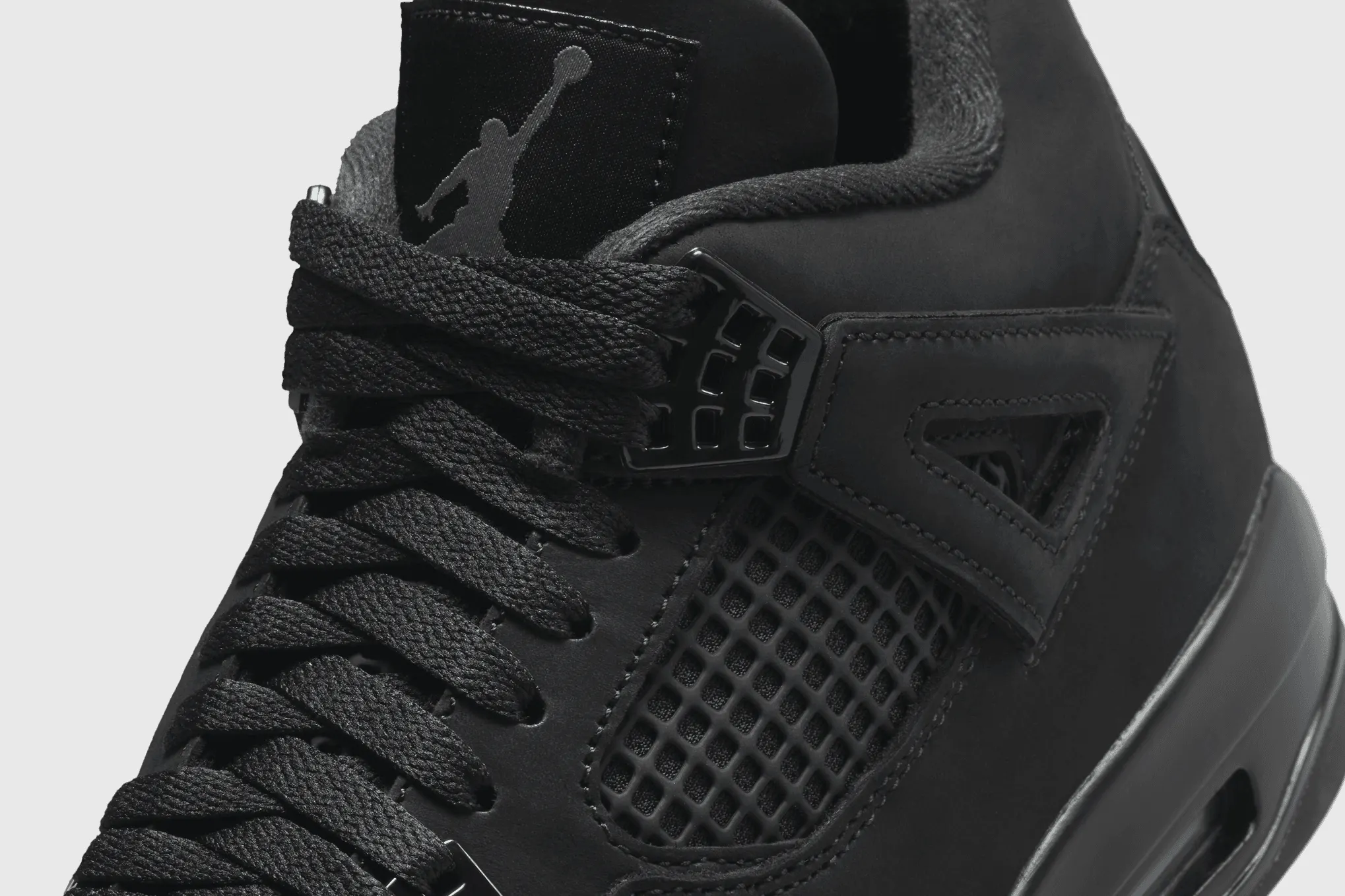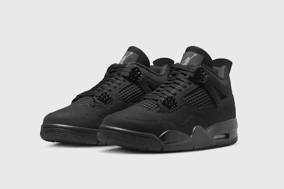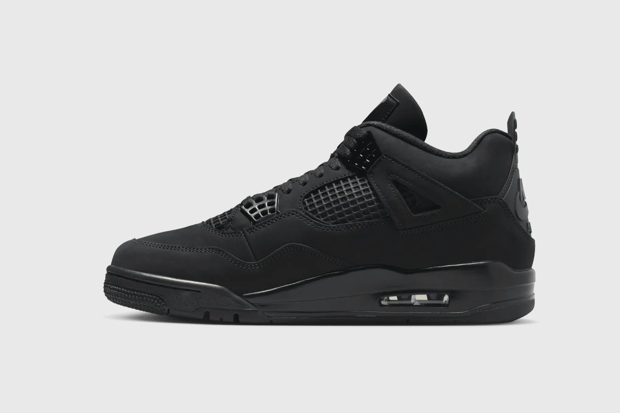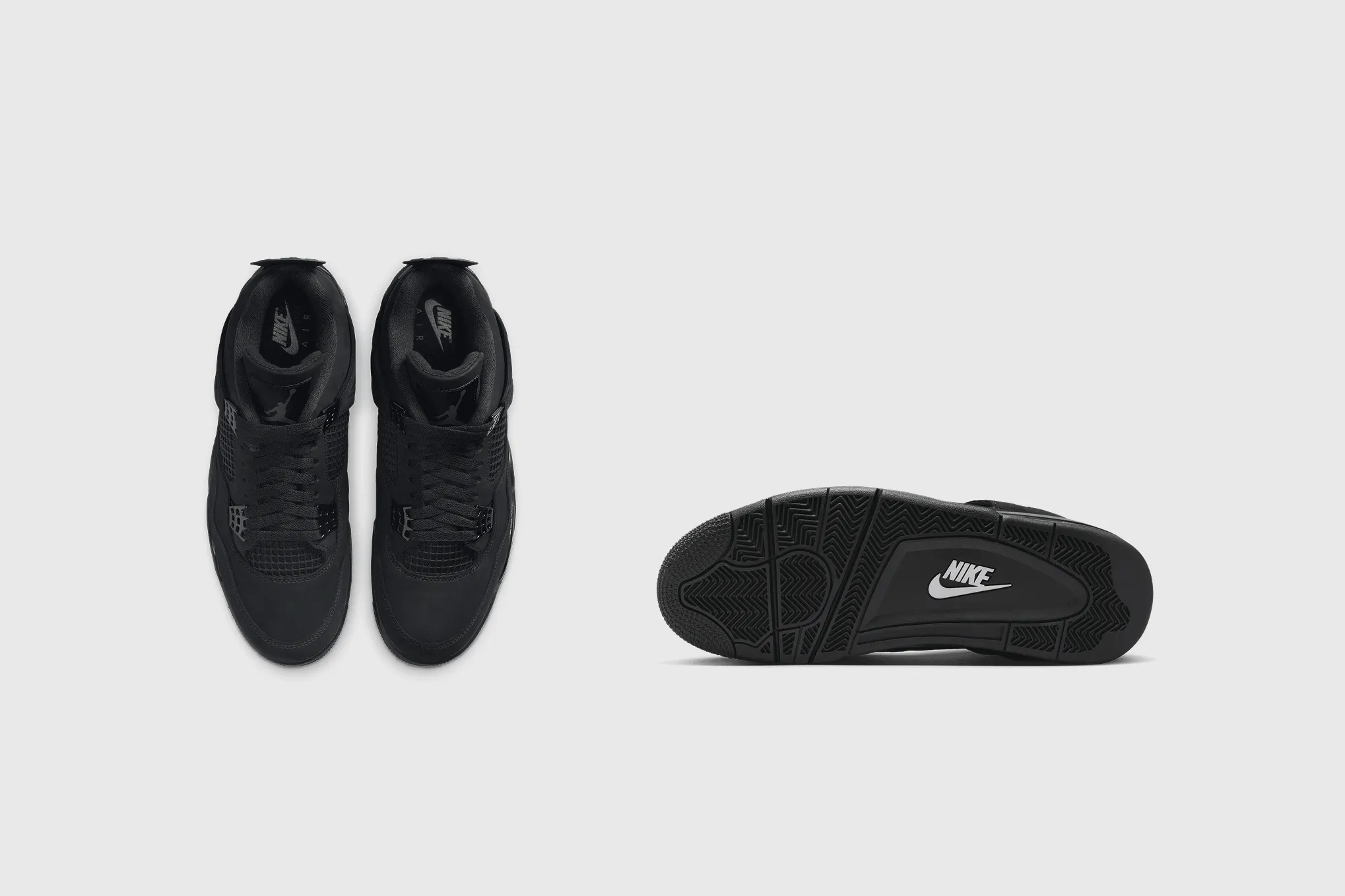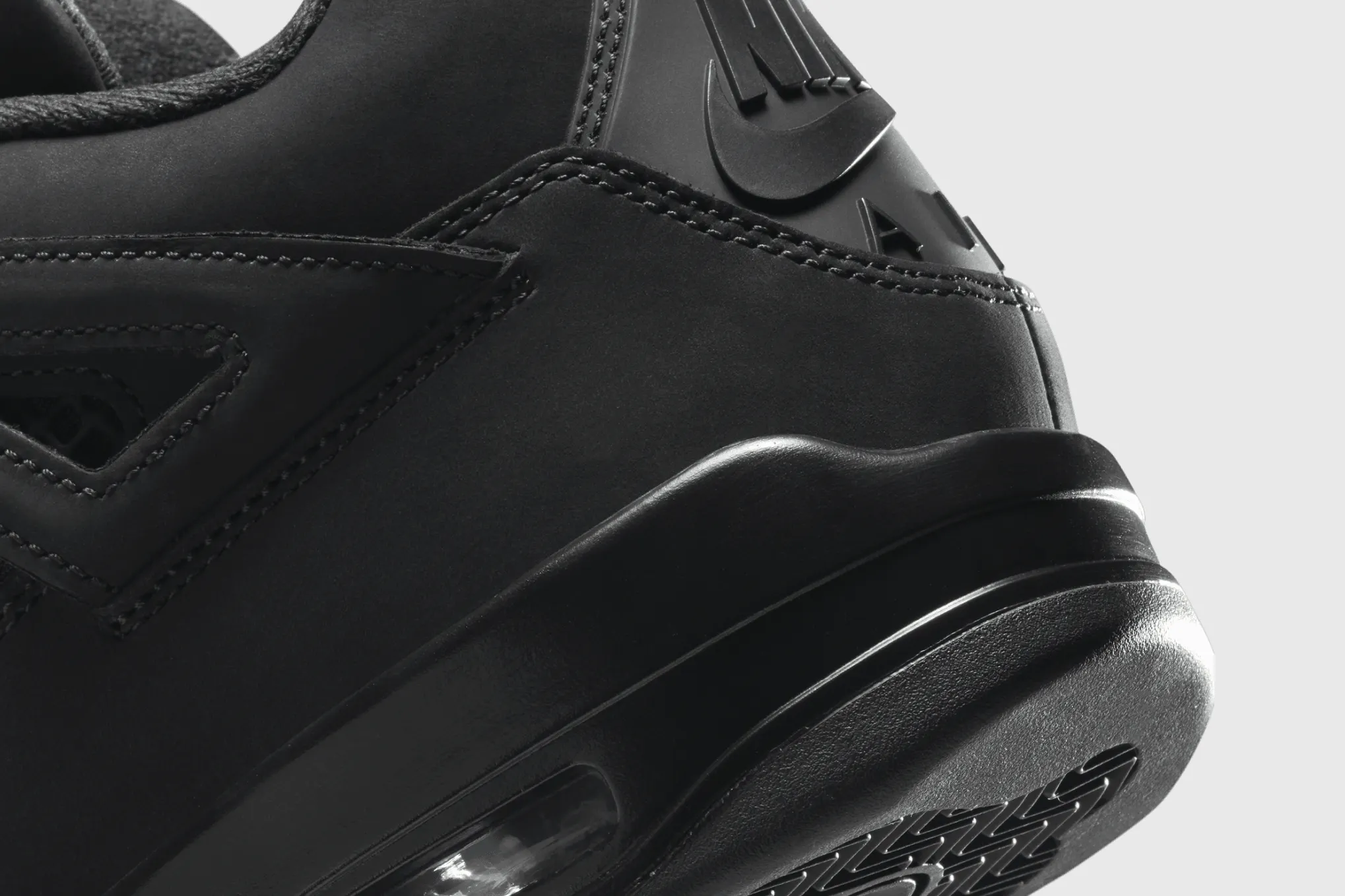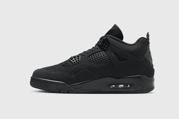 A revered icon of basketball and pop-culture history, the AJ4 has had a long line of storied colourways since its original '89 debut. One of the most remarkable, the 'Black Cat' spawned from one of MJ's many monikers, is back. A monochromatic silhouette of black nubuck leather and graphite matt finishes combine with signature OG features like moulded eyestays and breathable net-inspired accents. With a Jumpman tongue logo, and a glossy blackout Nike Air logo on the heel, this stealthy rendition is made for playing above the rim and staying below the radar.