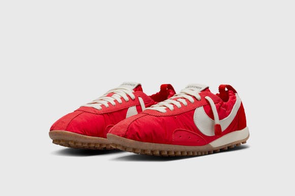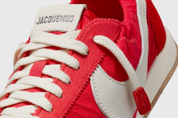 Simon Porte Jacquemus's fourth footwear collaboration with Nike dives deep into the company's running history and DNA. For the first time ever, Bill Bowerman's hand-built Moon Shoe is the subject of reinterpretation.